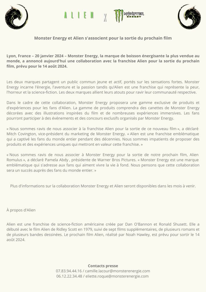 Production d'un kit presse pour le lancement d'une nouvelle boisson :